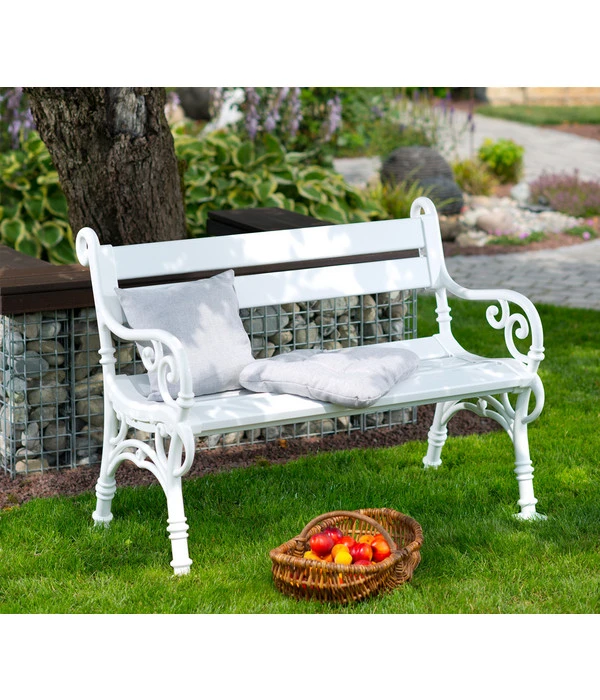Was kann schöner sein, als Zeit im eigenen Garten zu verbringen? Egal, ob auf einer großzügigen Loggia oder in einer lauschigen Ecke unter Bäumen, mit der Blome Bank Linderhof gestalten Sie Ihre Grünzone zum persönlichen Wohlfühlort im Freien! Als verspielter Hingucker im barock anmutenden Design bietet sie Platz für drei Personen und eignet sich perfekt für gemütliche Kaffeerunden oder Barbecues mit Freunden.