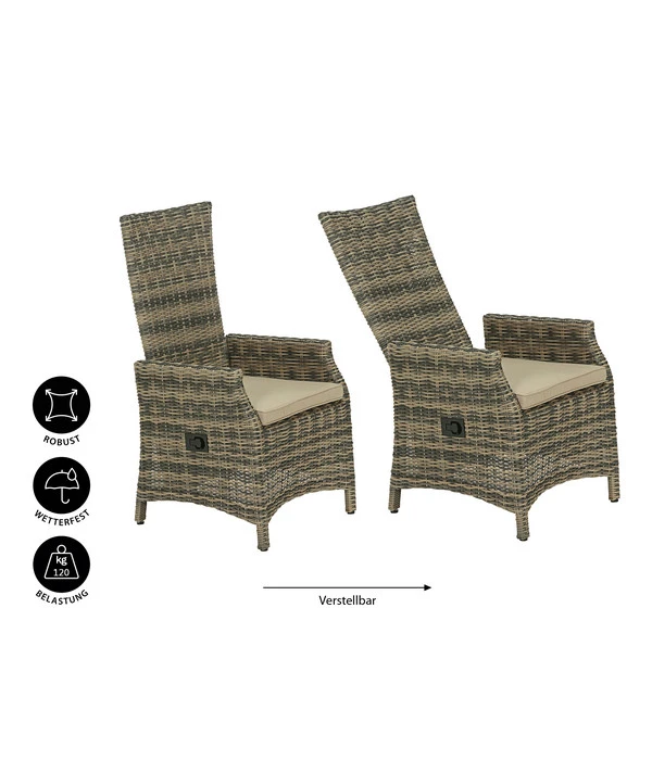 Liegt der Roman schon bereit, den Sie darin gerne lesen würden? Eine gute Idee! Denn der Dehner Geflechtsessel Siena ist eine wahre Entspannungsinsel, die sich sogar Ihren Wünschen anpassen lässt. Obwohl er aussieht wie aus einem Stück gefertigt, steckt hinter seinem attraktiven Kunststoffgeflecht ein echter Multifunktionssessel, bei dem sich die Rückenlehne verstellen lässt. Und das sogar stufenlos! Damit er außerdem nicht nur stabil wirkt, sondern es auch ist, steckt in diesem hochwertigen Outdoor-Sitzmöbel ein äußerst robustes, aber dennoch leichtes Gestell aus Aluminium. Das mitgelieferte Sitzkissen macht Ihr Bequem-Erlebnis schließlich perfekt. Lassen Sie sich also schon bald in Ihrem ganz persönlichen Dehner Geflechtsessel Siena nieder und machen Sie Ihre Terrasse zum gemütlichen Outdoor-Wohnzimmer!