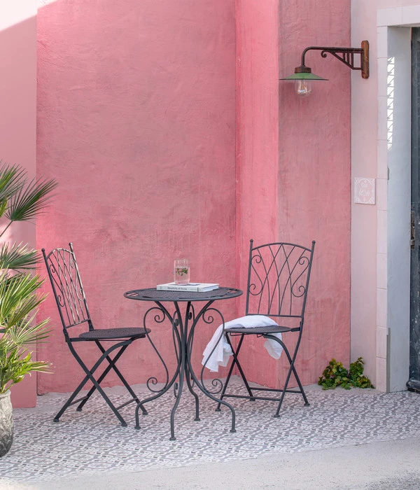 Gerade wenn Sie viel Zeit mit der Pflege Ihres Gartens verbringen, haben Sie sicher schon einmal mit einer Sitzgelegenheit geliebäugelt, auf der Sie kurz ausruhen können, die aber zugleich die dekorative Wirkung Ihrer Gartenanlage erhöht. Oder sind Sie stolzer Besitzer eines Blütenparadieses in luftiger Höhe und suchen einen Stuhl für den Balkon, der nicht viel Platz braucht, aber auch kein Allerwelts-Design haben sollte? Dann könnte der Dehner Klappstuhl ‘Luca‘ die Erfüllung Ihrer Träume sein. Er präsentiert sich in traditioneller Schmiedeeisen-Optik und verbreitet eine verspielt romantische Atmosphäre, wo immer er seinen Platz findet. Ganz aus Metall gefertigt vereint der Dehner Klappstuhl ‘Luca‘ hohe Stabilität mit eleganter Leichtigkeit. Vor allem die ornamentalen Verzierungen an der Rückenlehne unterstreichen das nostalgische Flair und sind immer ein wunderschöner Blickfang. Setzen Sie mit dem Dehner Klappstuhl ‘Luca‘ einen romantischen Akzent in Ihrem Outdoor-Bereich – Sie werden ebenso gerne auf ihm Platz nehmen wie ihn betrachten.