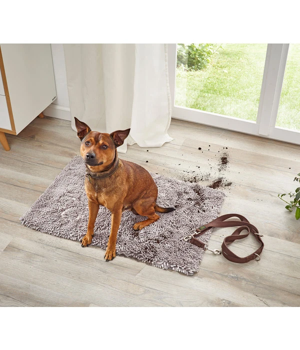 Welcher Hundebesitzer kennt nicht das Problem, dass bei Schmuddelwetter der Hund unschöne Spuren und Feuchtigkeit auf dem Boden hinterlässt. Mit der Dehner Lieblinge Hundematte Snuggy schaffen Sie ganz einfach Abhilfe. Einfach vor den Eingang legen, denn das Material der Fußmatte kann sehr viel Wasser aufnehmen und hält die Füße Ihres Vierbeiners und damit Ihre Böden sauber und trocken. Die Dehner Lieblinge Hundematte Snuggy schaut nicht nur gut aus, sondern schützt den Bodenbelag vor Schmutz und Feuchtigkeit und ist extrem langlebig. Um ein Verrutschen der Hundematte zu verhindern, ist die Fußmatte mit einer rutschsicheren Unterseite versehen. Die besonders weiche und kuschelige Dehner Lieblinge Hundematte Snuggy aus 100 % Polyester können Sie auch als Hundedecke verwenden. Die Decke für Hunde ist bei 30°C waschbar.