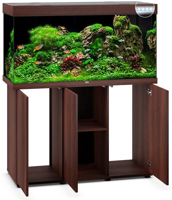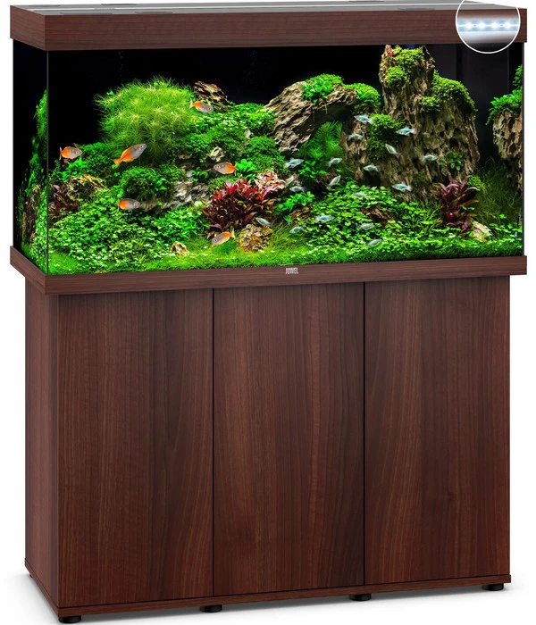 Technisch ist die JUWEL® AQUARIUM Kombination Rio 350 LED mit einem leistungsstarken Bioflow L Innenfilter ausgestattet, welcher Effektivität und Sicherheit miteinander verbindet. Der Filter ist mit fünf leistungsstarken Filtermedien und einer leisen aber kraftvollen Eccoflow 1000 Umwälzpumpe ausgestattet. Damit auch die Temperatur im Aquarium optimal ist bekommen Sie den AquaHeat Regelheizer 300 Watt gleich mit dazu. Durch Verwendung von Sicherheitsglas erfüllt der Heizer die Ansprüche in punkto Sicherheit und ist natürlich TÜV/GS zertifiziert. Damit die JUWEL® AQUARIUM Kombination Rio 350 LED auch wirklich in jeden Wohnraum passt, gibt es die schicke Kombination in verschiedenen Farben. Der Unterschrank ist mit dem Ganzglasaquarium der optimale Blickfang und bietet dank seines großzügigen Stauraums genügend Platz für Zubehör, Fischfutter oder auch Wasserpflege. Mit der JUWEL® AQUARIUM Kombination Rio 350 LED bleiben garantiert keinerlei Wünsche offen.