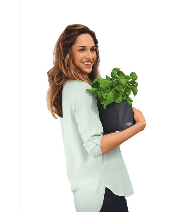 Die Oberfläche des LECHUZA® CUBE Color hat eine schöne Webstruktur, der Kräuterwürfel ist außerdem in verschiedenen aktuellen Farben erhältlich. Der bruchsichere hochwertige Kunststoff ist federleicht und macht dank seiner hervorragenden Qualität und dem modernen Design immer eine gute Figur. Ganz gleich, ob sie den LECHUZA® CUBE Color in der Küche, in den Wohnräumen oder auch draußen auf Terrasse oder Balkon platzieren.Das Material ist zudem UV-beständig.