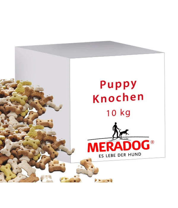Ihr Vierbeiner verschmäht seine Hundesnacks oder wünscht sich einfach mal eine Abwechslung? Dann sollten Sie etwas Neues probieren und ihm einmal die leckeren Hundebiskuits MERA® Puppy Knochen anbieten! Mit diesen leckeren, ca. 2,2 cm großen MERA® Hundesnack Puppy Knochen für zwischendurch wird es Ihrer Fellnase und seinem Gaumen mit Sicherheit nicht so schnell langweilig, denn diese Hundeleckerli werden ofenfrisch gebacken und sind extra knusprig. Besonders hervorzuheben sind die unterschiedlichen geschmacklichen Nuancen, die auch bereits über die Farbe jeden einzelnen Hundekekse zu erkennen sind.