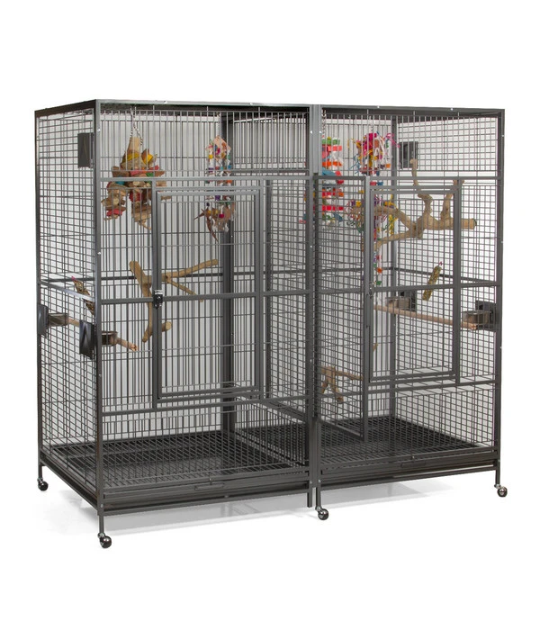 Vogelvoliere, aus beschichtetem Stahl, auf Rollenfüßen, in zwei Hälften teilbar, inkl. Zubehör