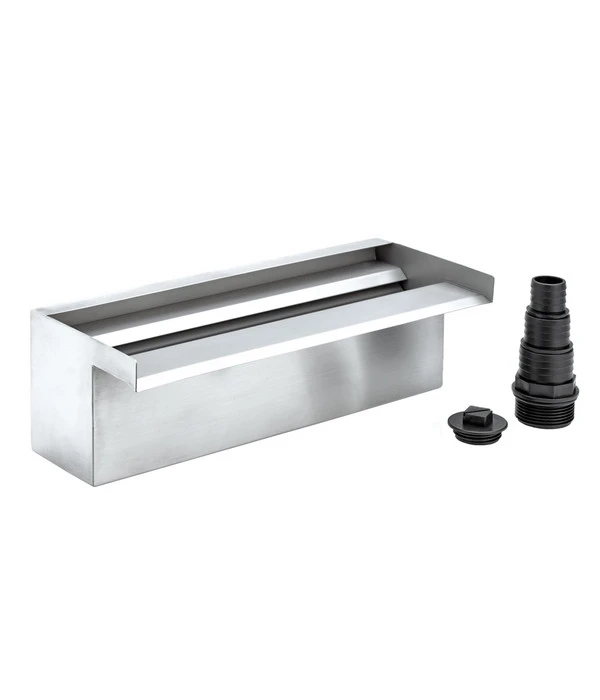 Platzieren Sie Ihren Wasserfall ganz nach Ihren Wünschen und profitieren Sie von den unzähligen Einsatzszenarien: Der Oase Waterfall kann sowohl in eine Mauer integriert als auch an einer Wand verschraubt werden. Mit den beiden Varianten von 30 und 60 cm Länge können Sie das Modell für Ihren individuellen Anspruch auswählen. Auch als extravagante Wasserzufuhr für Ihren Gartenteich eignet sich der Oase Waterfall hervorragend. Durch eine Anbringung in einer Höhe von bis zu 1 Meter können Sie die Ausmaße des Wasserfalls verändern und an Ihre Anforderungen anpassen. Ein faszinierendes, gleichmäßiges Wasserbild wird garantiert, wenn die Leistung der separat zu erwerbenden Pumpe angemessen ist. Selbstverständlich sind im Lieferumfang auch Zubehörteile wie Gewindeöffnungen, Schlauchtüllen und Stopfen enthalten. Damit wird der Einbau zum Kinderspiel.