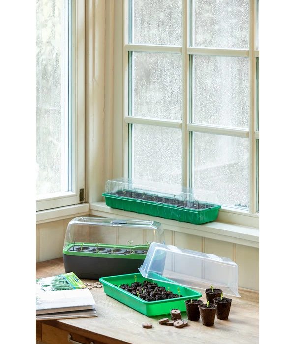 Stylisches Design in Kombination mit pflanzlichen Elementen liegt absolut im Wohntrend. Dank des topmodernen Gewächshauses von BoQUBE gelingt dies mit Stil. Die Handhabe dabei ist denkbar einfach: Bei dem ideal gehaltenen Abstand zwischen den Keimlingen lassen Sie zehn Quelltabletten mit Saatgut keimen. Ein cleveres Bewässerungssystem in Form von Kanälen führt gleichmäßig Wasser zu und verhindert Staunässe. Dank der integrierten Gießöffnung mit beidseitiger Belüftung brauchen Sie die Abdeckung nicht entfernen, um Ihre Pflanzen mit dem Lebenselixier zu versorgen. Der Deckel gewährt der Indoor-Flora Schutz und Ihnen – aufgrund seines bruchsicheren und durchsichtigen Materials – einen glasklaren Durchblick. Bestellen Sie jetzt dieses ästhetische Accessoire und erfreuen Sie sich schon in Bälde an Ihrem BoQUBE Gewächshaus!