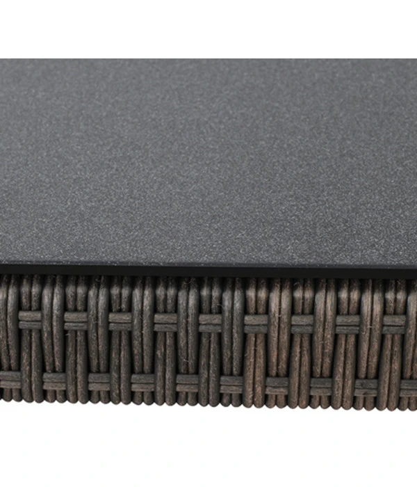 Für Ihre Kaffeepause oder den gemütlichen Lounge-Abend im Freien ist der Siena Garden Kaffeetisch Teramo ideal. Das robuste, pulverbeschichtete Aluminium-Untergestell sorgt für sehr gute Standfestigkeit. Elegant wirkt der Siena Garden Kaffeetisch Teramo durch das bronzefarbige Gardino®-Geflecht. Kunststofffüße schonen den Bodenbelag beim Verschieben des Tisches. Die Eigenschaften der Spraystoneplatte werden Sie überzeugen. Spraystone ist ein Gemisch aus Harz und pulverisiertem Stein. Dadurch wirkt die Platte massiv, ist aber nicht so schwer wie eine Steinplatte. Sie lässt sich nicht nur einfach abwischen, sondern Ihre Gläser und Teller stehen flächig gerade. Die verwendeten Materialien sind lichtecht und pflegeleicht. Die Kanten des Siena Garden Kaffeetisches Teramo sind leicht abgerundet. Beim Gardino®-Geflecht sind alle Flechtenden so versteckt verarbeitet, dass kein noch so feiner Stoff daran hängen bleiben kann. Auf saubere Übergänge von der Platte zum Geflecht wurde ebenfalls geachtet.