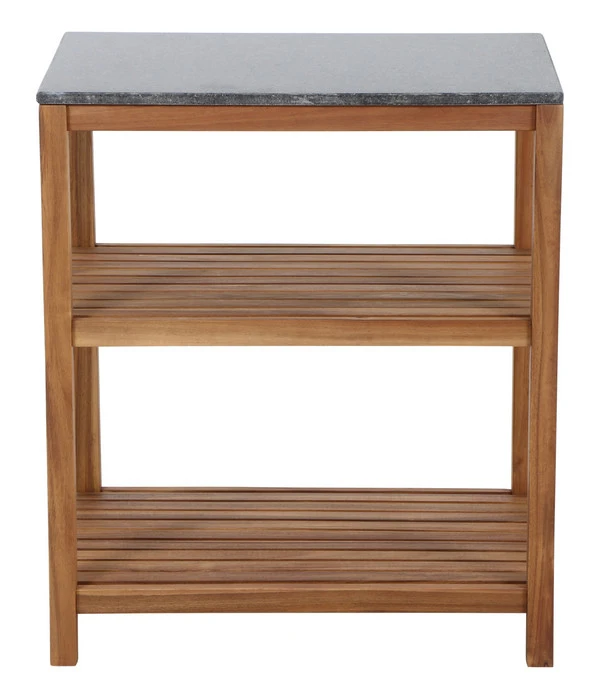 Das Siena Garden Outdoorküche Mittelteil Riva lässt auch in puncto Qualität keine Wünsche offen. Ganz aus massivem Akazienholz gefertigt und geölt kommt die typische Holzmaserung ideal zur Geltung und ist das edle, Hartholz bestens auf seinen Außeneinsatz vorbereitet. Die Arbeitsplatte besteht – quasi als Krönung des hochwertigen Regals – aus dunklem Granit mit einer dezenten, individuellen Struktur.