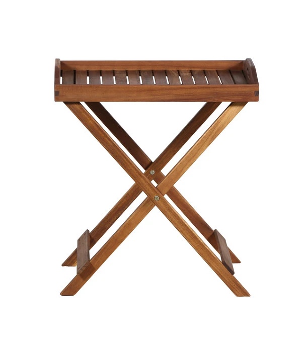 Der Tablett-Tisch Astoria von Siena Garden besteht aus FSC-zertifiziertem Akazienholz. Dieser hochwertige Werkstoff macht das Outdoormöbel sehr robust und wetterfest. Die geölte Oberfläche verspricht zudem eine lange Haltbarkeit. Wenn Sie den Tisch zu gewissen Zeiten gerne verstauen wollen, klappen Sie ihn einfach zusammen und lagern sie ihn platzsparend ein. Rasch ist er dann wieder herausgeholt, wenn sich Gäste anmelden und Sie sie mit feinen Speisen und Getränken verköstigen möchten. Bestellen Sie den praktischen Tablett-Tisch Astoria aus dem Hause Siena Garden also am besten noch heute.